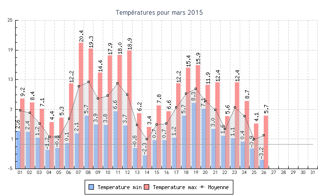 | 26 | -3.2 °C | 5.7 °C | 1.7 °C | 3.9 km/h (29.0 km/h) | O |