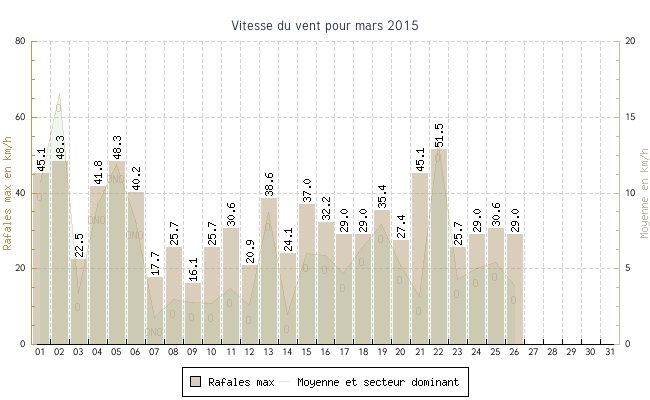 | min | max | moy | Vitesse (rafales) | Secteur | ||