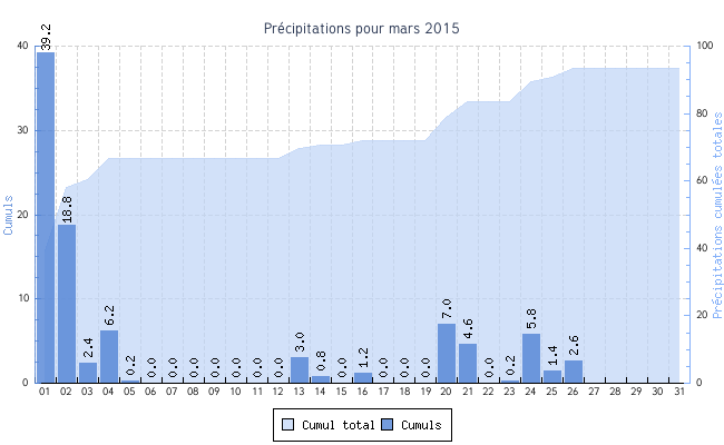| Total | -3.2 °C | 20.4 °C | 6.4 °C | 6.1 km/h (51.5 km/h) | O |